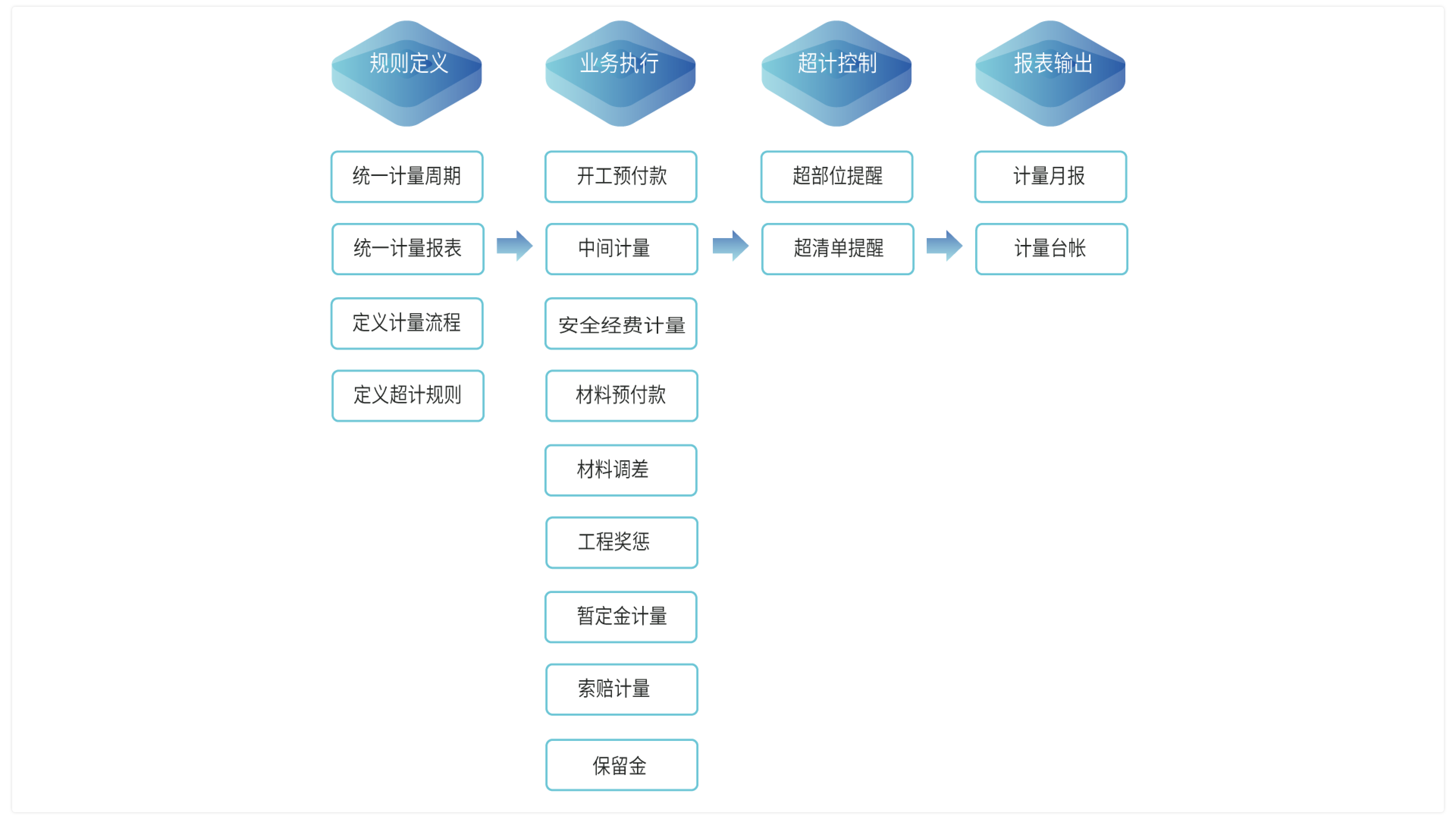 留痕、報(bào)表完整、超計(jì)預(yù)警等,實(shí)現(xiàn)了計(jì)量支付業(yè)務(wù)的標(biāo)準(zhǔn)化和規(guī)范化。