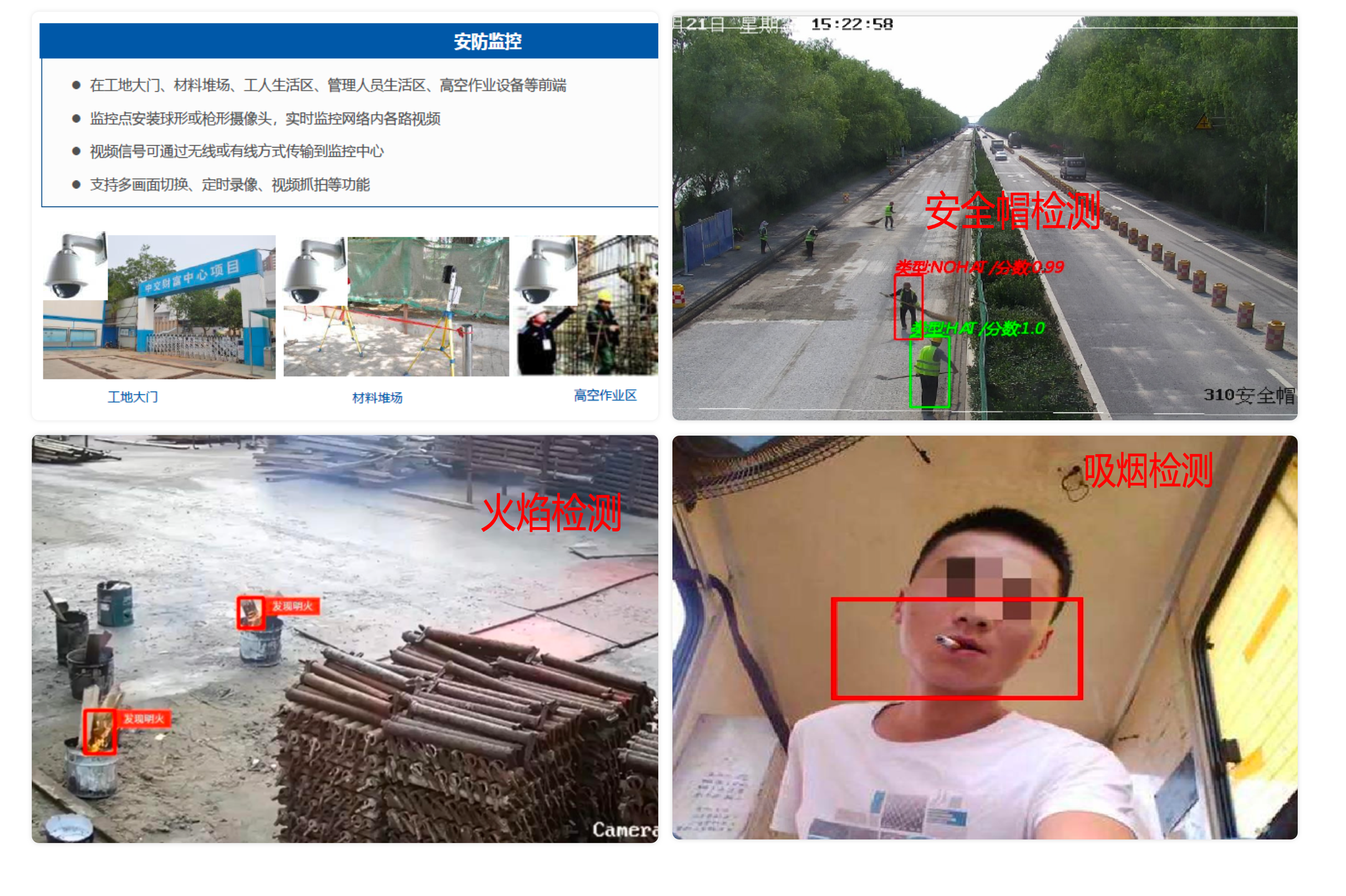智能視頻監(jiān)控設(shè)備,利用邊緣算法實時對施工現(xiàn)場、人員行為、設(shè)備運(yùn)行狀態(tài)、施工環(huán)境等進(jìn)行監(jiān)控和預(yù)警,及時發(fā)現(xiàn)安
