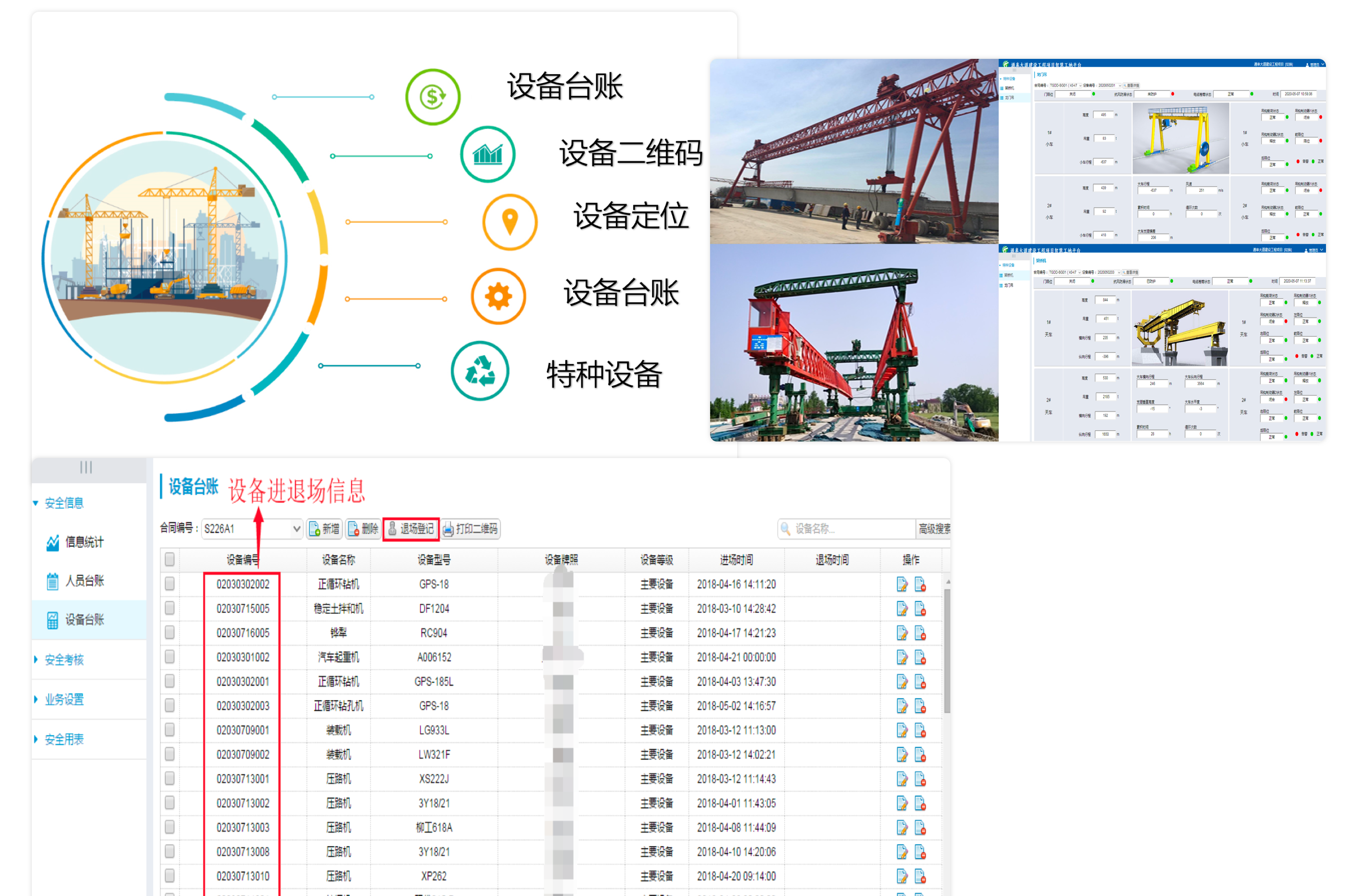 在項目施工過程中會有大量設(shè)備的使用,針對施工設(shè)備進(jìn)行進(jìn)出場登記,能有效的了解和掌握項目設(shè)備投入情況,同時對特種
